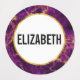 Étiquettes imperméables personnalisés avec un beau motif abstrait au design marbré. Des couleurs violettes riches se mélangent avec des rubans tourbillonnants d'or faux, mélangeant et mélangeant les couleurs tout au long du design. Un cercle avec une fausse bordure en feuille d'or superposée avec votre texte personnalisé à l'intérieur.