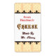 Ce étiquette personnalisé a du texte personnalisé sur le dessus dans des lettres rouges bloquées avec le mot Fromage dans des lettres gothiques décorées au centre et la chambre pour votre nom sur le bas dans des lettres de script marron. Sur une vintage frontière motif d'art de la coupe de bois en jaune et orange cheddar pour les cuisiniers qui aiment faire du fromage. Cliquez sur Customiser pour modifier les polices, les couleurs, le dimensionnement des éléments et des étiquettes, et plus encore, enregistrez votre conception pour plus tard.
