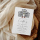 Illustration chic unique de grange dans un thème d'automne avec lumières jaunes et citrouilles orange. Il s'agit d'un élégant design rustique avec de la calligraphie et des polices modernes. Le côté arrière contient le nom et l'adresse du couple (facultatif).