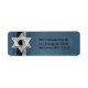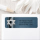 Étiquette d'adresse de retour avec l'étoile argentée de David, bordure rayée et arrière - plan bleu. Parfait pour les cartes ou les invitations. Facile à customiser avec votre texte.