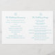 Dessin simple en blanc et bleu d'une étoile de mer / mer, avec des tourbillons à vague graphique, Beau programme de mariage bleu vert et blanc couleurs de la mer. Mariage design moderne tendance de style plage partie de l'étoile de mer mariage stationnaire. Jolies teintes pastel bleu et bleu aqua sur un arrière - plan crème sablonneux. Modifiez ce programme de mariage avec votre nom, dates, libellé de la cérémonie, accompagnateurs de mariage et merci. Un programme simple mais élégant remplace simplement l'exemple de texte par vos informations de mariage et plie les programmes en deux à la livraison. Un programme de mariage parfait pour une plage, une mer inspirée par l'océan ou une destination maritime de mariage. Dessin unique et design par Sarah Trett.