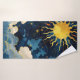 Présentant les étoiles de soleil céleste et les serviettes de bain de nuages bleus, un ajout luxueux et enchanteur à votre décor de salle de bain qui apporte la beauté du cosmos dans votre quotidien. Cette serviette de bain présente un design captivant principalement en bleu foncé, capturant l'essence sereine et mystérieuse du ciel nocturne. Au centre, un grand soleil moderne rayonne brillamment, servant de point focal frappant qui ajoute chaleur et vitalité à votre expérience de bain. Autour du soleil se trouve un ensemble fascinant d'étoiles et de corps célestes, méticuleusement détaillés dans les tons blanc, gris et jaune. Ces étoiles créent un tableau céleste harmonieux, ajoutant de la profondeur et une touche de magie à la serviette de bain. L'agencement soigné de chaque étoile améliore l'esthétique globale, faisant de cette serviette un morceau de charme pour quiconque est fasciné par les merveilles de l'univers. Le charme céleste est renforcé par des nuages fantaisistes de bleu foncé, bleu clair, blanc et gris. Ces nuages sont artistiquement crées, fournissant texture et mouvement à la conception. L'interaction de ces nuages avec les éléments célestes crée une scène dynamique et visuellement captivante, à la fois moderne et enchanteresse. Ce design est parfait pour tous ceux qui aiment la beauté mystique du ciel et les corps célestes qui l'ornent. Accentuer le soleil et les nuages sont des flecks délicats et des motifs en jaune et or. Ces détails chatoyants attirent la lumière magnifiquement, ajoutant une touche de brillant et de luxe à la serviette de bain. La combinaison de couleurs et de détails complexes donne lieu à une pièce moderne, amusante et visuellement étonnante qui met en valeur tout décor de salle de bain, rendant votre quotidien à la fois agréable et visuellement délicieux. Idéal pour ceux qui ont une passion pour les thèmes célestes, l'astrologie et la beauté mystique de la nature, cette serviette de bain est plus qu'un simple article fonctionnel. Il sert de rappel quotidien des merveilles de l'univers et de la sérénité du ciel. Que vous débutiez votre journée avec une douche rafraîchissante ou que vous vous tendiez dans un bain relaxant, le Modern Celestial Sun Stars and Blue Clouds Bath Towel est conçu pour élever votre expérience et refléter votre amour pour le cosmos. Profitez du charme céleste et de l'élégance contemporaine de cette serviette de bain exquise, et laissez-la transformer votre salle de bain en un sanctuaire où les étoiles brillent et les nuages dansent autour d'un soleil doré. Parfait pour tous ceux qui s'inspirent du ciel, des étoiles, du soleil ou de la lune, cette serviette de bain est un parfait mélange de fonctionnalité et de beauté céleste, ce qui en fait un ajout essentiel à la collection de tous les amateurs de céleste.
