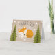 Carte de remerciements illustrant une illustration d'un renard qui s'allonge entre deux arbres à feuillage persistant entourés d'étoiles. L'Arrière - plan est inspiré par le stock de carte. Des invitations assorties à des douches pour bébés sont disponibles à Jill's Paperie.