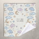 Cette serviette personnalisée présente une illustration succincte d'étoiles joueuses, de lunes de croissant et de nuages moelleux à l'aquarelle pastel douce.