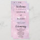Présentez notre programme de mariage mystique de nuit, un ajout captivant et enchanteur à votre journée de mariage. Ce design exquis présente un décor de ciel nocturne rose et violet, orné d'étoiles roses et blanches délicates, créant une ambiance mystique et céleste qui respire romantisme et charme. Sur la couverture, le texte est soigneusement présenté en noir classique, avec les noms du couple, la date du mariage et l'emplacement avec une élégance sobre. L'ordre de cérémonie soigneusement orchestré est minutieusement détaillé, afin que vos invités puissent suivre chaque moment de votre journée spéciale en toute transparence. Ajoutant une touche d'enchantement au programme, les mots "Welcome", "Ceremony" et "Wedding Party" sont délicatement confectionnés dans une police de caractères décoratifs. Ces détails ornés infument le programme avec un sens de la magie et de la célébration, en contraste avec la simplicité de la police de blocs. Ce mélange harmonieux de styles reflète l'essence de la modernité et l'allure intemporelle. Sur la couverture arrière, vos membres estimés de la fête de mariage sont célébrés, leurs rôles mis en évidence d'une manière qui complète le thème céleste. Chaque détail est minutieusement conçu, créant un programme de mariage cohésif et visuellement attrayant qui reflète votre style unique et votre histoire d'amour. Célébrez votre histoire d'amour avec notre programme de mariage mystique de nuit, un choix sophistiqué qui promet d'améliorer la beauté de votre cérémonie. Laissez le design enchanteur et l'attention méticuleuse au détail faire de votre célébration mariage une expérience inoubliable, laissant chacun captivé par l'élégance céleste et la romance de votre union.