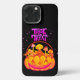 C'est la conception de la fête de l'halloween qui célèbre la prochaine Halloween. Cette kawaii dessinée à la main et illustration amusante présente un joyeux halloween, des champignons citrouilles et un tour ou un régal.
