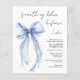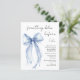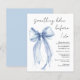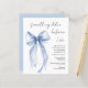 Elegantes Budget Braudusche Einladung mit einer delikaten Aquarellfarbe eines blauen Coquette-Bogens und "etwas Blau vor mir" in einem schicken Skript. Dieses halbglänzende Haushaltspapier ist gewichtsähnlich wie Foto. Eine dickere 12x18-Kartenversion steht ebenfalls zur Verfügung (Nachricht für den Link).
