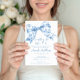 Feiern Sie stilvoll mit unserer eleganten und charmanten Brautdusche-Einladung "Something Blue before I do". Mit einem zarten blauen Toilbogen im eleganten Coquette-Stil und einem zeitlosen Blumenmuster auf der Rückseite fügt dieses Design Ihrem besonderen Tag eine Touch Vintager Eleganz hinzu. Ideal für ein klassisches, romantisches und prächtiges Brautparty.