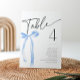 Coquette Blue Bow Tischnummer Cards für ein "She's Tying the Knot" oder ein "Something blue before I do I" themed Brautparty. In dieser Kollektion sind auch passende Einladungen, Gehäusekarten und Schilder erhältlich.
