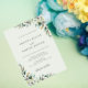 Célébrez votre journée spéciale avec ce Faire-part de mariage floral botanique Eucalyptus, un mélange parfait d'élégance naturelle et de simplicité raffinée. Conçu avec une verdure peinte à la main, des fleurs blanches douces et des touches de coton, cet invitation est à la fois rustique, jardin et mariage moderne. Une police serif propre et une disposition soignée assurent la lisibilité tout en conservant un charme intemporel. La bordure botanique équilibrée encadre magnifiquement les noms et les détails mariages du couple. Faits saillants : Aquarelle eucalyptus feuille et fleurs blanches Elégante combinaison de serif et de script Conception botanique minimale mais luxuriante Idéale pour les mariages rustiques, verdoyants, boho-chic et nature Entièrement personnalisable pour correspondre à votre célébration unique, imprimé sur papier de qualité supérieure pour une touche de luxe.