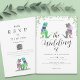 Wenn Sie und Ihr Partner Dinoliebhaber sind, ist diese lustige und stilvolle Dinosaurier-Hochzeitseinladung der perfekte Weg, Ihren großen Tag zu feiern! Mit einer spielerischen T-Rex Braut und einem Bräutigam in einer lebendigen Mischung aus Blau, Rosa, lila, Grün, aquamarin und Pfirsichfarben verbindet diese Einladung Ihre Liebe für Dinosaurier mit eleganten botanischen Elementen. Das Eukalyptusblättern und die Vegetation bringen eine frische, natürliche Touch mit sich, während die lustigen T-Rex-Illustrationen die perfekte Menge an Laune und Charme verleihen. Mit einfach zu bedienenden Vorlagen können Sie die Einladung schnell personalisieren, indem Sie die Namen der Braut und des Bräutigams, das Hochzeitstag, den Veranstaltungsort und alle wichtigen Details hinzufügen. Die Einführung eines individuellen Hochzeitswebsite QR Code macht es für die Gäste leicht, online UAWG zu machen und alles schlank und stressfrei behalten. Einzigartige Dinosaurier Braut und Bräutigam und Eukalyptus foliage Wasserfarbe Original Kunstwerk von Künstlerin Catherine Sweetman, diese einzigartige Hochzeitseinladung verbindet Spaß, Eleganz und naturlich inspiriert Schönheit und macht es zur perfekten Wahl für ein Paar, das will, ein wenig Dino-Magie zu ihrem besonderen Tag hinzuzufügen!