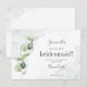 Watercolor Bridesmaid proposition Eucalyptus Script avec un design botanique minimaliste moderne sur un arrière - plan blanc avec typographie populaire vous pouvez facilement modifier TIP : Consultez ci-dessous pour d'autres événements de préparation mariage et pré-mariage articles incluant des invitations à la douche nuptiale, cartes de remerciement, étiquettes de champagne etc collection suite pour ce design!