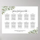 Ce tableau de sièges mariage rustique présente des sprigs de feuilles d'eucalyptus d'aquarelle et de la verdure dans les tons menthe, mousse et vert sauge. L'aménagement traditionnel comprend des sièges pour 10 tables ou 100 personnes avec 10 noms par table. Le titre dit : "s'il vous plaît trouvez votre table" dans une calligraphie de script dentée avec les noms du couple et la date mariage en bas. Une belle façon d'aider vos clients à trouver leurs tables à la réception tout en ajoutant une touche de style.