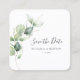 Créez votre propre carte unique et moderne Save the Date avec un code QR en utilisant ce modèle de verdure succulent Eucalyptus.