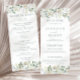 Élevez votre mariage avec nos élégantes cartes de programme de mariage classique d'inspiration botanique. Avec une végétation luxuriante et des feuilles d'eucalyptus associés à des fleurs de rose blanche, ces cartes ajoutent une touche de beauté intemporelle à votre célébration. Parfaites pour les mariages à thème nature, rustiques et de jardin, ces cartes de programme complètent parfaitement votre thème mariage.