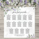 Ce tableau de 14 places mariage présente un magnifique design boho rustique avec des fleurs de lavande aquarelle peintes à la main et des feuilles d'eucalyptus, du feuillage et de la verdure sur un arrière - plan bleu marbré. Il comprend l'assignation de table pour 140 personnes avec 10 places par table. Le titre de calligraphie du script de dentelle dit : Veuillez trouver votre table, et les noms du couple et de la date mariage apparaissent en bas. Une façon merveilleuse d'aider vos invités à trouver leurs sièges tout en ajoutant élégance et style à votre réception.