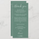 Une élégante fête de mariage vert eucalyptus merci carte de réception qui peut être personnalisée avant et arrière avec votre message de remerciement spécial dans différentes langues, mis en typographie élégante. Un souvenir spécial, merci à vos invités. Conçu par Thisisnotme©