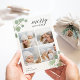 Partagez vos voeux de vacances avec ces cartes de collage photo chic de Noël avec quatre de vos photos carrés préférées encadrées en haut et en bas par des feuilles d'eucalyptus aquarellés en vert pastel. "Joyeux Noël" apparaît en haut à droite dans un élégant mélange de calligraphie et de lettrage moderne, et l'année est soigneusement cachée dans l'un des feuilles. Personnalisez avec votre nom de famille en bas à gauche.
