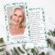Cette carte de poème commémorative peut être remise en souvenir lors d'une célébration de la vie ou d'un service funéraire ou en hommage spécial à ceux qui n'ont pas pu y assister. Cette carte peut être personnalisée avec une photo préférée et votre choix de prière ou de poème. Veuillez noter que la personne représentée n'est utilisée qu'à titre d'illustration, veuillez remplacer la photo avant de la commander.