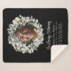 Personalized memorial photo blankets offer a comforting and heartfelt way to honor the life of a loved one. This custom "In Loving Memory" blanket design features a centered photo framed by a delicate watercolor eucalyptus and white floral wreath, set against a rich black background for a timeless and elegant tribute. Below the portrait, customizable name, dates, and a touching remembrance quote add a meaningful personal touch that brings warmth and emotional significance to the piece. Ideal as a sympathy gift, keepsake, or display at a celebration of life or funeral service, this Sherpa blanket provides comfort while preserving cherished memories in a visually stunning way. The calming botanical elements and minimalist layout create a modern yet respectful aesthetic suitable for any memorial setting. Whether draped over a chair, displayed during a service, or kept as a lasting memento at home, this custom memorial blanket serves as a beautiful way to keep a loved one’s memory close.