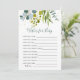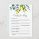 "Wives for Baby" - Jeu de Baby shower. Cette conception présente une aquarelle illustrant des branchettes vertes avec des feuilles d'eucalyptus. Vous pouvez ajuster le texte en fonction de vos besoins. Sur le dessus de la carte - confettis à effet doré.