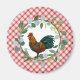 Großartiger Magnet für Ihr Bauerndekor - mit diagonal picknickrotem kariertem Hintergrund mit Eukalyptuskranz in Aquarellfarbe und farbenfroher Hahnenzeichnung