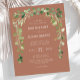 Diese stilvolle rustikale Hochzeitseinladung besticht durch einen zarten, türkisfarbenen Eukalyptus-grünen Bogen. Personalisieren Sie es mit den Namen der Paare in weißen Sans Serif Schriftart auf einem Terrakotta Hintergrund. Die Rückseite der Karte ist massiv Terrakotta.