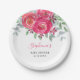 Diese hübschen Baby-Duschpapier-Teller sind mit Aquarellfarben-Rose und Blume in Rosa und lila mit Eukalyptus und anderem Blattwerk. Einfach mit Ihren Daten anpassbar. Weil wir unsere Kunstwerke erstellen, werden Sie dieses exakte Bild von anderen Designern nicht finden. Original Wasserfarbe © Michele Davies.