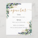 Ein schick weißer Hintergrund. Dekoriert mit grünen Aquarellen Eukalyptusbäumen, Blätter, Grünpflanzen, Imitaten vergoldeten Blätter und goldenen Glitzer Flecken. Mit dem Text: Bar öffnen. Personalisieren Sie Ihr Menü und fügen Sie Ihr Bar hinzu. Schwarze und goldene Buchstaben.
