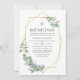 Wald eucalyptus grün Fledermaus mitzvah Einladung mit goldenem geometrischem Rahmen anpassbar an Ihre Event-Spezifikationen. Feiern Sie diesen wichtigen Meilenstein mit einer eleganten Bat Mitzvah-Einladung mit sanften Aquarellakzenten und einem modernen goldgeometrischen Rahmen. Die gepflegte Typografie und das minimalistische Design bringen Eleganz und Anmut mit sich und machen sie perfekt für diesen bedeutsamen Anlass. Vollständig anpassbar mit all Ihren Veranstaltungsdetails.