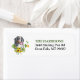 Die links Seite dieser Rücksendeadressen-Aufkleber zeigt ein Aquarellbild eines Berner Hundes unter verstreuten Sonnenblumen und Eukalyptus-Blätter. Ihr eigener Text ist rechts grün und dunkelgrau.