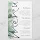 Ein günstiges Preis-Leistungs-Verhältnis von 5,5" x 8,5", auf einem eleganten 110 lb LINEN Stock - für ein luxuriöses Ambiente zu einem guten Preis-Leistungs-Verhältnis, perfekt für Menüs, Einladungen und Programme etc. Diese Alternative zur Budgetgröße ist auch bei anderen Papiervorschlägen verfügbar. Der SEMI-GLOSS 110 lb Kartenvorrat ist etwa so dick wie eine Postkarte, funktioniert also auch bei Einladungen gut. Das FELT 100 lbs Papier ist bufffarben, NICHT weiß, fügt also eine rustikale Touch hinzu. Das Papier MATTE 80lbs ist hell weiß, für knackigen Druck, ideal für Ihre Menüs und Programme, während das SATIN 80lbs Papier dünn und leicht, ideal für Gehäuse. BITTE BEACHTEN SIE, DASS DIE OPTIONALEN ENVELOPES ETWAS GRÖSSER SIND, CA. 6,75" x 9". Dieses moderne Design verfügt über Menu in elegantem Set-Skript, das auf der links Seite läuft und die Erholung des Textes auf der rechten Seite ausgerichtet ist, die Sie leicht personalisieren können, sowie Ihre Namen und Ihr Hochzeitdatum auf der Rückseite. Ein Rand von üppig grünen Euclyptus-Blätter ist auf der links Seite vorne und auf der rechten Seite auf der Rückseite.