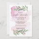 COUPLES BRIDAL SHOWER EINLADUNG. Handgemalte moderne Aquarellwäsche, die von sanft vermischten Farben von Rosa. Einfache, abgerundete Blattsprigs aus kalifornischem Eukalyptus-Blattwerk enden oben und unten im Design. Copyright, Audrey Jeanne Roberts.