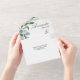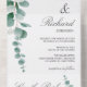 Erleben Sie Ihren Gast mit dieser eleganten Hochzeitsfeier mit wunderschönen Eukalyptus-Blätter und moderner Typografie mit abnehmbarer UAWG-Postkarte. Fügen Sie einfach Ihre Veranstaltungsdetails zu dieser einfach zu bedienenden Vorlage hinzu, um sie zu einer einmaligen Einladung zu machen.