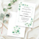Eine bezaubernde Hochzeitseinladung mit einem sanften Wasserfarbenthema, das die Schönheit des Augenblicks sanft reflektiert. Grüne Farbtöne harmonieren harmonisch in eine romantische Kulisse, die perfekt für Ihren besonderen Tag ist. Eukalyptus-Blätter bringen eine Touch von natürlicher Eleganz und Anmut. Dieses Design verbindet zeitlosen Charme mit einem modernen Rand. Ideal für Hochzeitsfeiern, rustikale Hochzeiten oder Botanische Hochzeiten. Lass deine Liebe-Geschichte mit Stil und Sinn.