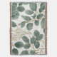 Dieses Design bietet Eukalyptus-Blätter und Äste auf weißem Hintergrund. Das Design ist flach, grafisch und sanft grün und goldfarben. Das Muster besteht aus Blätter und Verzweigungen, die in eine andere Richtung angeordnet sind.