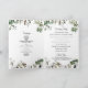 Eine wunderschöne Hochzeitsordnung des Serviceprogramms mit rustikalen Eukalyptus-Blätter, Vintagem Grün und Vögeln. Ein elegantes Design, ideal für jedes Hochzeitsthema. Auch die passenden Hochzeitseinladungen und andere Schreibwaren sind verfügbar.