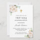 Weiße, mit Eukalyptusgrün dekorierte Untergründe, weiße Blumen (Pfannkuchen), goldene Blätter. Personalisieren und einen Namen und Zeremonie Details. Zurück: weißer Hintergrund. Sie können jede gewollt Hintergrundfarbe hinzufügen, indem Sie auf "Design bearbeiten" klicken und dann die Hintergrundschicht auf Ihrem verlassen.