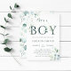 Eukalyptus Botanical Letter Boy Baby Shoounter Einladung