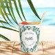 Ein weißer Hintergrund. Die Einrichtung ist mit einem Eukalyptuskranz geschmückt. Personalisieren und fügen Sie Datum und Namen hinzu.