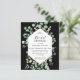 Dieses Botanische Leafy Bridal Shower Einladungen - mit schwarzem handgeschriebenem und elegantem Skripttext mit grünem Eukalyptus-Rahmen auf schwarzem Hintergrund. Die Rückseite der Brauteinladung ist lakonisch schwarz. Bitte beachten Sie, dass Umschläge in diesem Design NICHT enthalten sind. Wenn Sie Umschläge benötigen, Karo Sie bitte unsere Kollektion oder kaufen Sie sie separat vom Marktplatz.