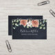 Entspannen Sie Ihre Rustikale Hochzeit mit unserer Rustikalen Rose Eukalyptus Floral Botanical Black Business Card. Geeignet für Hochzeitsorganisator und Event Planner! Personalisieren Sie es mit Ihrem Namen, Telefon und Adresse, es fügt eine Touch von natürlicher Eleganz zu Ihrem Stil. Gut als Geschenk für Natur- und Blume-Liebhaber.