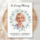 Moderne Eukalyptus Beileid Foto Beerdigung Dankeschön Karten. Diese Beerdigungskarten sind mit einer einzigartigen Fotovorlage in eukalyptus-botanischem Kranz, Namen und Daten in modernem Weiß-Design ausgestattet. Personalisieren Sie Ihre Rückmeldung mit Ihrer Dankesbotschaft. Diese Gedenkkarten eignen sich hervorragend für die Begräbniskarten, oder für die Feier des Beileids dank der Dankkarten. COPYRIGHT © 2020 Judy Burrows, Black Dog Art - Alle Rechte vorbehalten. Eukalyptus Foto Beerdigung Beileid Dankeschön Karte
