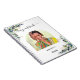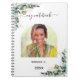 Personalisieren und fügen Sie Ihr eigenes Foto in den bogenförmigen Rahmen. Eine weiße Hintergrundfarbe. Die Einrichtung ist mit Eukalyptusgrün und goldgelbem Blattwerk gestaltet. Fügen Sie einen Titel, Ihren Namen und ein Jahr hinzu. Der Titel wird mit einem modernen handgeschriebenen Stilskript mit Swashes geschrieben. Um die Swashes behalten, löschen Sie nur den Beispielnamen, verlass die Leerzeichen oder Emoji's vor und nach dem Namen.