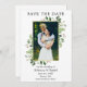 Moderne Eukalyptus Greenerity Frame Save the Date Foto Verlobung Announcement Card - Goldrahmen