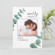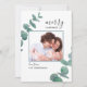 Senden Sie Weihnachten Grüße an Familie und Freunde mit dieser stilvollen Weihnachts- / Feiertagskarte. Es ist mit Aquarell Eukalyptus-Blätter und moderner Typografie dekoriert. Personalisieren Sie es mit Ihrem eigenen Foto, Ihrer Nachricht und Ihrem eigenen Namen. Original Wasserfarbe © Michele Davies.