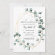Trendy Aquarell Eukalyptus Silber Dollar Hochzeitsbrunch Einladung mit goldenem geometrischem Rahmen.