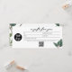 Ein schöner, moderner Geschenkgutschein mit Eukalyptus Aquarell, Script Kalligraphie, QR Code und Firmenlogo. Dieses minimalistische Geschenkgutdesign ist ideal für alle Arten von Unternehmen. Einfach anpassen und zu Ihrem eigenen machen.