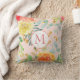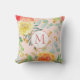 Dieses rot rosa Kissen zeichnet sich durch eine Aquarellblume mit Imitat Glitzer und rundem Monogramm aus. Personalisieren Sie es mit einem ersten.