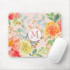 Diese elegante Maus-Matte zeichnet sich durch eine Aquarellblütendesign mit Rose, Eukalyptus, Blätter, Imitat Glitzer und einem Monogramm aus. Personalisieren Sie es mit einem ersten.